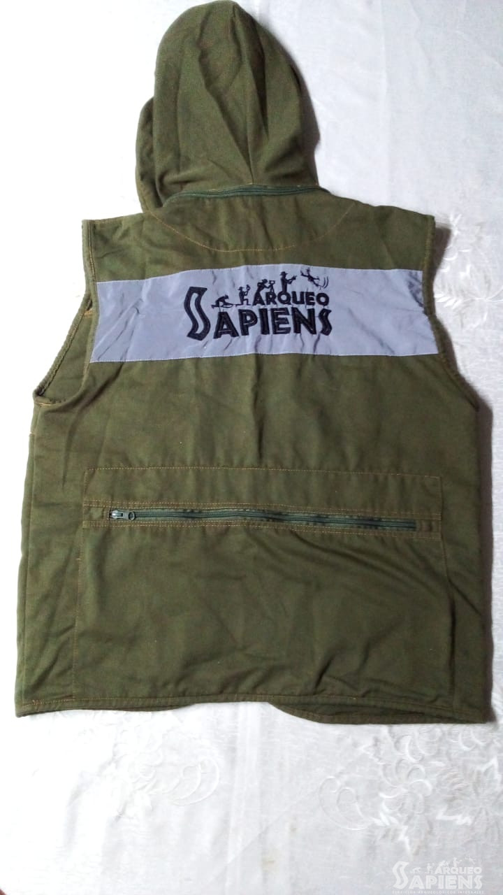 Chaleco especializado para arqueología. Cuenta con dos (2) bolsillos impermeables, seis (6) bolsillos para equipos y herramientas, además de un impermeable para lluvia.